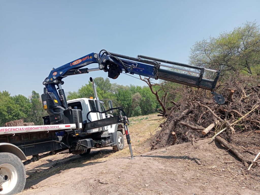 Este operativo se lleva a cabo en las inmediaciones del ejido San Mateo, aguas abajo del puente amortiguador de la presa Endhó, donde las brigadas Conagua retiran troncos, maleza y lodos que obstruyen el cauce del río por medio de un camión plataforma y grúa articulada. Es importante recordar que, con estas maniobras, el Gobierno de México, a través de la Conagua, atiende la petición de habitantes del municipio de Tepetitlán, refrendando su compromiso de ser un gobierno cercano y de ejecutar acciones de protección a los centros de población y el campo.