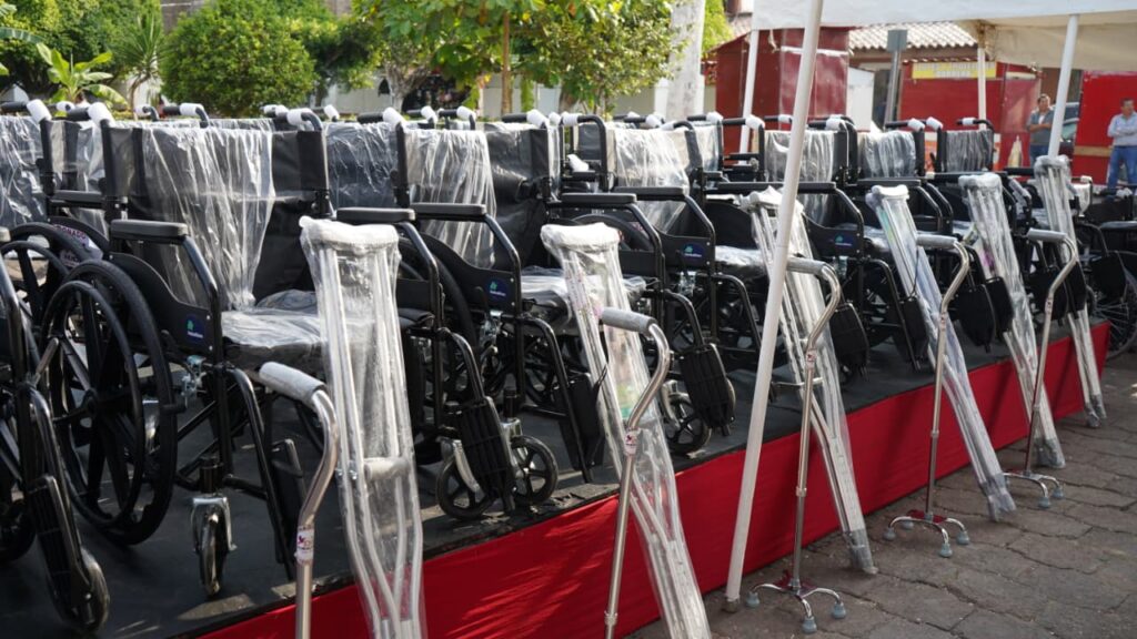 - El Presidente Municipal, Lic. José Alfredo San Román Duval y la Dra. Kristel Rodríguez, Presidenta del Sistema DIF Municipal, encabezaron la entrega gratuita de andaderas, sillas de rueda, sillas PCI, sillas PCA, muletas y otros beneficios a niños, jóvenes y adultos en vulnerabilidad.