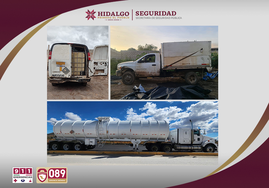 Estos resultados forman parte del trabajo permanente de la SSPH para fortalecer el control territorial, inhibir el robo de hidrocarburo y contribuir a la seguridad en el estado, en coordinación con autoridades federales y estatales, dando seguimiento puntual a la política de seguridad establecida para Hidalgo.