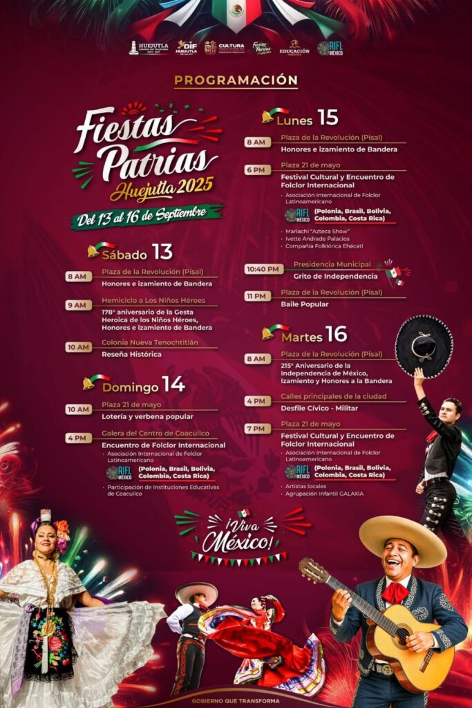 Este 13 al 16 de Septiembre la Presidencia Municipal de Huejutla 2024-2027 te invita a acompañar estas fiestas patrias a lo grande!!!