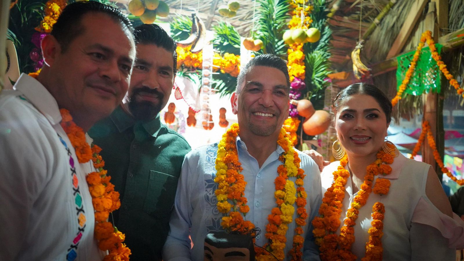 Previo a su llegada al gran escenario del Xantolo 2025, el presidente municipal, junto con autoridades e invitados especiales, recorrió las exposiciones de altares y gastronomía instaladas en la Plaza Nicandro Castillo, donde las y los visitantes pueden conocer la manera tan peculiar e íntima en que los huastecos recibimos a nuestros muertos, así como apreciar las artesanías y demás elementos que utilizamos para honrarles.