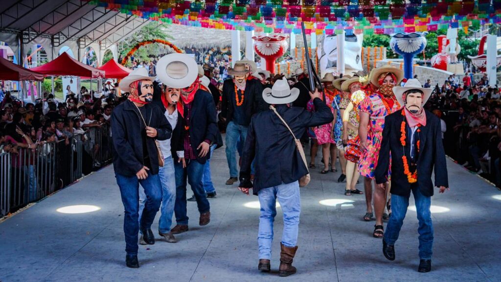 Como parte del cierre de esta primera noche de festejos, se contó con la presentación de la cuadrilla Herencia y Tradición, del barrio San José, así como la del grupo Los Sagahón, que llenaron de música y buen ambiente la Plaza del Reloj, concluyendo así un exitoso inicio del Xantolo 2025.