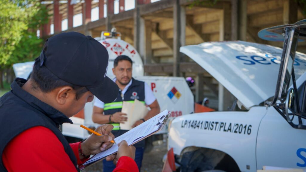 Durante las inspecciones, se aplicaron listas de verificación que incluyeron la revisión de posibles fugas de gas, la disponibilidad de botiquín de primeros auxilios, herramientas básicas, vigencia de extintores, estado óptimo de llantas y la comprobación de seguro de cobertura amplia. Asimismo, se validaron los dictámenes correspondientes conforme a las normas -05 y -07.