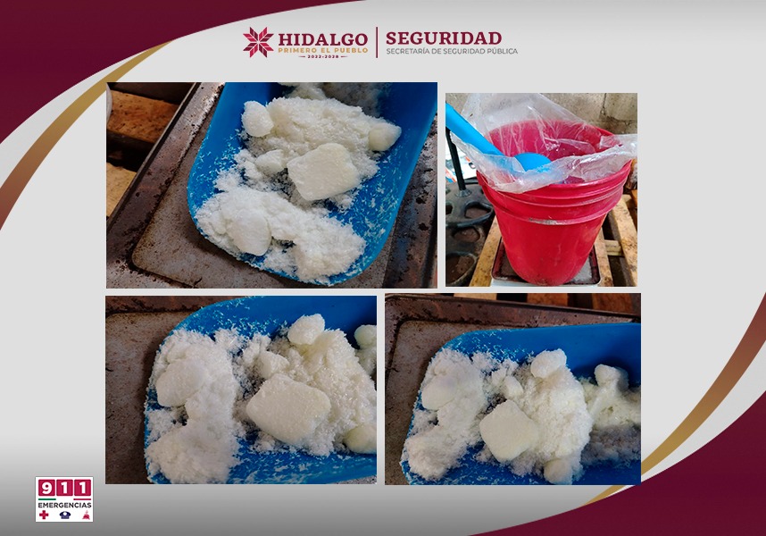 Mediante la ejecución de cuatro cateos simultáneos en la localidad de Hueyotlipa, municipio de Acatlán, la Secretaría de Seguridad Pública de Hidalgo (SSPH), en coordinación con Ejército Mexicano, Guardia Nacional y la Procuraduría General de Justicia del Estado (PGJEH), logró el desmantelamiento de un laboratorio clandestino utilizado, presuntamente, para la elaboración y distribución de posible droga sintética.