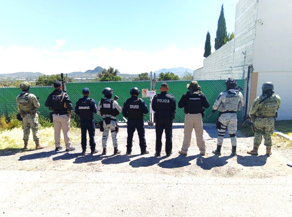 En coordinación con personal de la Procuraduría General de Justicia de Hidalgo, Secretaría de la Defensa Nacional, Guardia Nacional y agentes del mando coordinado de la Policía Municipal de Mineral de la Reforma, se dio seguimiento a labores de investigación en las que se logró la localización de un predio ubicado en la colonia Apepelco, en Pachuquilla, donde presuntamente se resguardaban las unidades robadas.